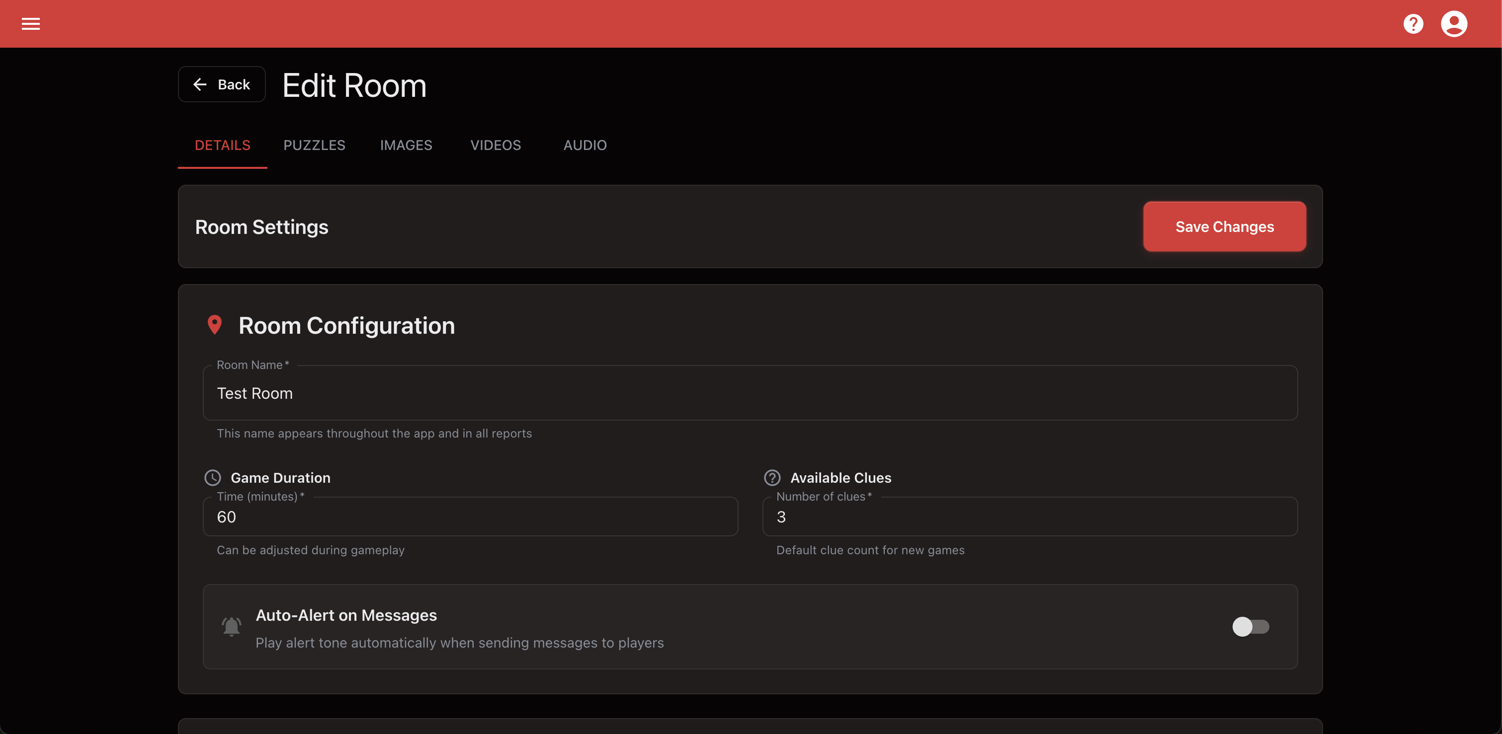 <table data-view="cards"><thead><tr><th>Guide</th><th data-card-target data-type="content-ref">Open</th><th data-hidden data-card-cover data-type="image">Cover image</th></tr></thead><tbody><tr><td><strong>Create And Configure Your First Room</strong><br>Set room defaults and move into the editor.</td><td><a href="getting-started/create-and-configure-your-first-room">create-and-configure-your-first-room</a></td><td><a href="https://4201072019-files.gitbook.io/~/files/v0/b/gitbook-x-prod.appspot.com/o/spaces%2FC32oMJLkI8XnHB2QVSVO%2Fuploads%2Fgit-blob-91238253246766a27d24c2d33a284cb612a52a3d%2FEdit%20Room%201.png?alt=media">Edit Room 1.png</a></td></tr><tr><td><strong>Run A Live Session</strong><br>Use the Room Dashboard during gameplay.</td><td><a href="run-live-sessions/run-rooms/run-a-live-session">run-a-live-session</a></td><td><a href="https://4201072019-files.gitbook.io/~/files/v0/b/gitbook-x-prod.appspot.com/o/spaces%2FC32oMJLkI8XnHB2QVSVO%2Fuploads%2Fgit-blob-20c69f1e7f94c1d2155f237bbb069b346af4fab4%2FDashboard.png?alt=media">Dashboard.png</a></td></tr><tr><td><strong>View Room Statistics</strong><br>Review results, notes, and action logs.</td><td><a href="review-performance/review-performance/view-room-statistics">view-room-statistics</a></td><td><a href="https://4201072019-files.gitbook.io/~/files/v0/b/gitbook-x-prod.appspot.com/o/spaces%2FC32oMJLkI8XnHB2QVSVO%2Fuploads%2Fgit-blob-afebc9169acf08f4433723420e16ad0e53269fc7%2FRoom%20Statistics.png?alt=media">Room Statistics.png</a></td></tr></tbody></table>