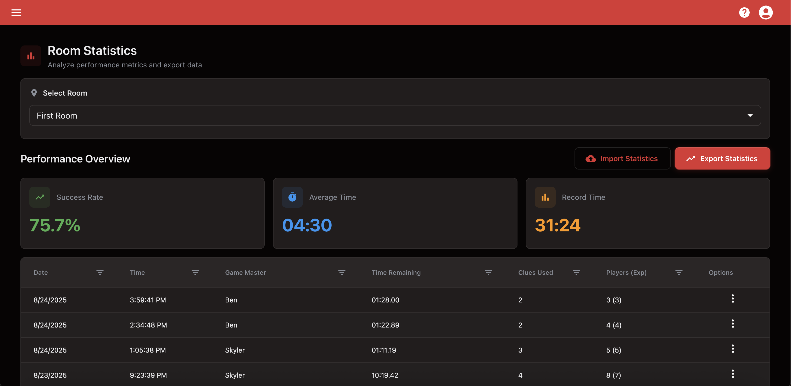 Escape Director is a web app for escape room operations. Use it to build rooms, run live sessions, and review what happened afterward from one system.